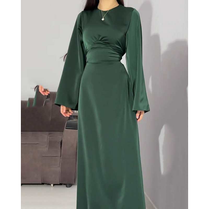 Women's Long Dress Maxi Dress Prom Dress Party Dress Cocktail Dress Elegant Modern Evening Party Party Wedding Guest Regular Fit Plain Long Sleeve Crew Neck White Red Navy Blue Green Spring Fall