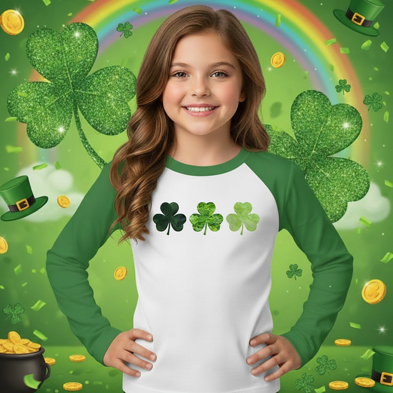 St. Paddy's Day Girls' 3D Graphic St. Patrick's Day T shirt Tee Long Sleeve 3D Print Spring Fall Sports Fashion Streetwear Kids 4-12 Years Crew Neck Casual Daily Outdoor Regular Fit