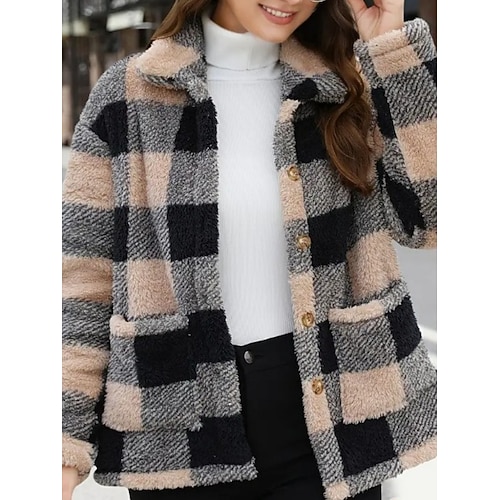 Per donna Cappotto Invernale Giacca Sherpa Confortevole Traspirante Tasca Bottoni Stampato Casual Plaid Vacanza Streetwear Casuale Abbigliamento quotidiano Monopetto Regolare Collo ripiegato