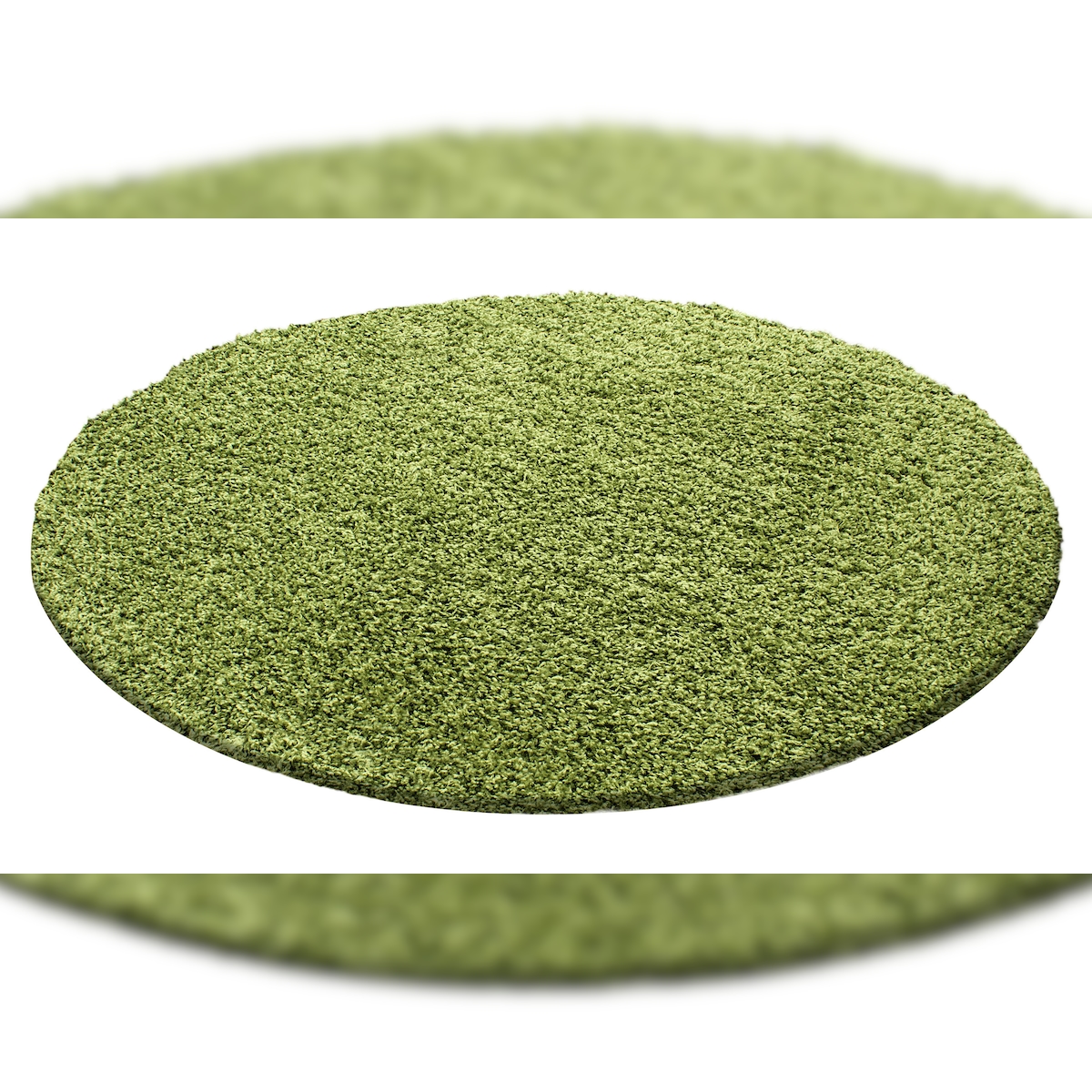 Teppich Schlafzimmer Hochflor Unifarben Samtweich Waschbar Strapazierfähig Wohnzimmer Rund Grün 120x120 cm – RHEIN von Kadima Design