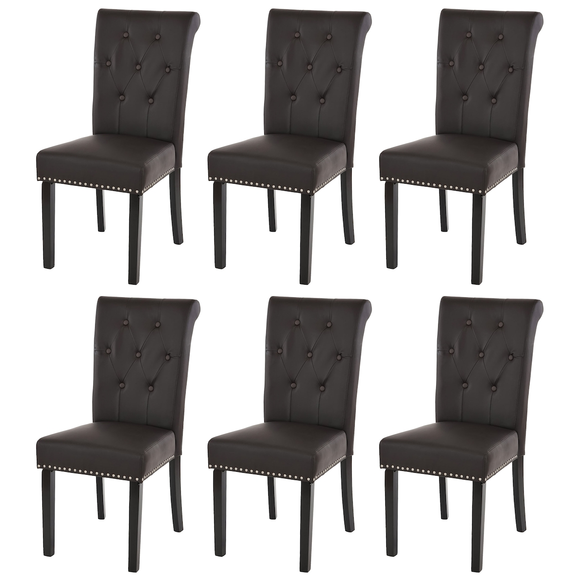 Mendler 6er-Set Esszimmerstuhl Chesterfield II, Stuhl Küchenstuhl, Nieten ~ Kunstleder, coffee, dunkle Beine