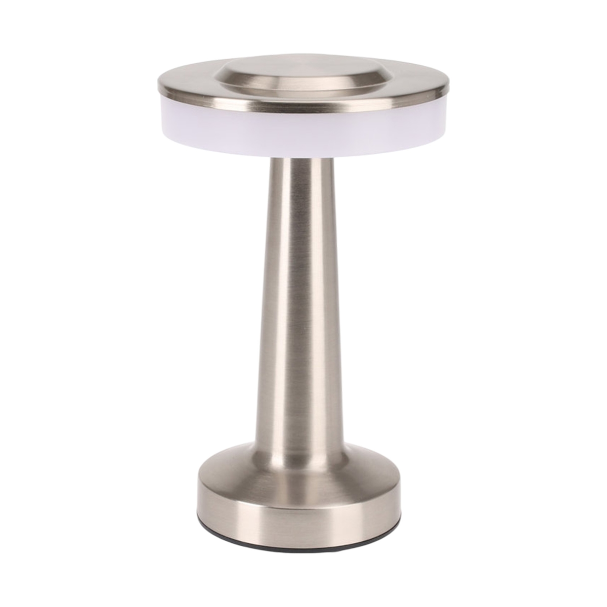 WellHome - Silberne Tischleuchte aus Stahl mit warmweißem Licht und wiederaufladbarem Akku Ø12x20cm