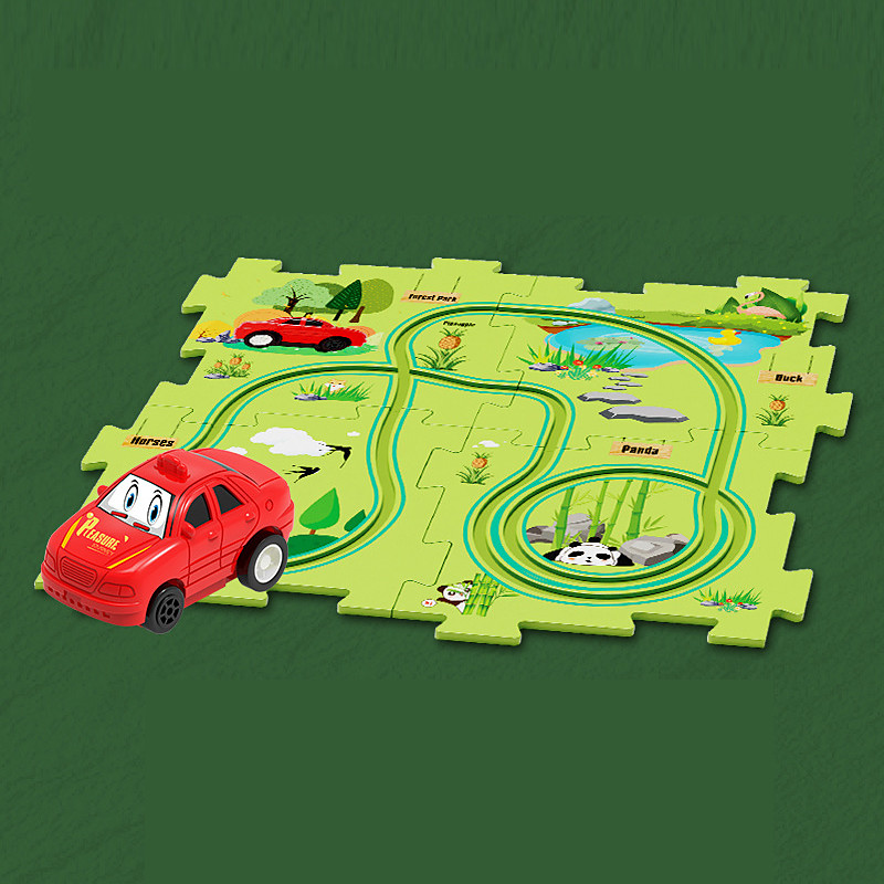 Tiktok Car Map Jigsaw Diy Track Set Electric Car Toy Mini Road Sign Puzzle Toy Christmas Gift