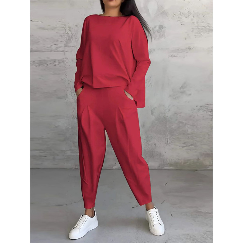 Women's Elegant Warm Fashion Two Piece Sets Tracksuit Pants Sets Long Sleeve Bishop Sleeve Crew Neck Graphic Letter Print Outdoor Vacation Daily Black Pink Dark Pink Spring Regular Fit