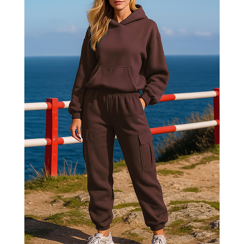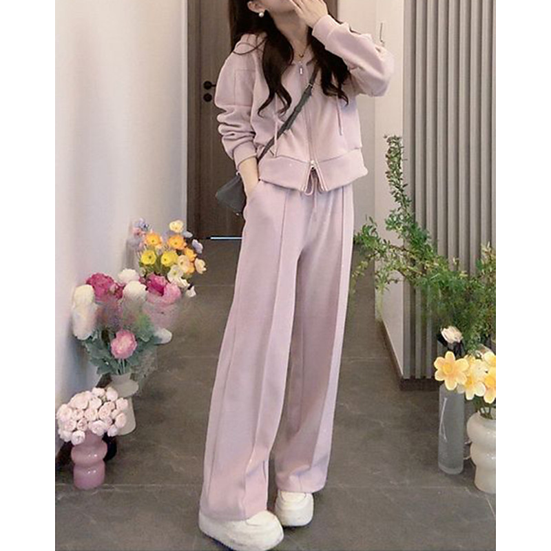Women's Zip Up Sweatshirt 2 Piece Tracksuit Sweatsuit Sets Drawstring Solid Colored Clothing Suit Fall Black Pink Hiking Vocation Running Long Sleeve Sport Activewear Micro-elastic Regular Fit