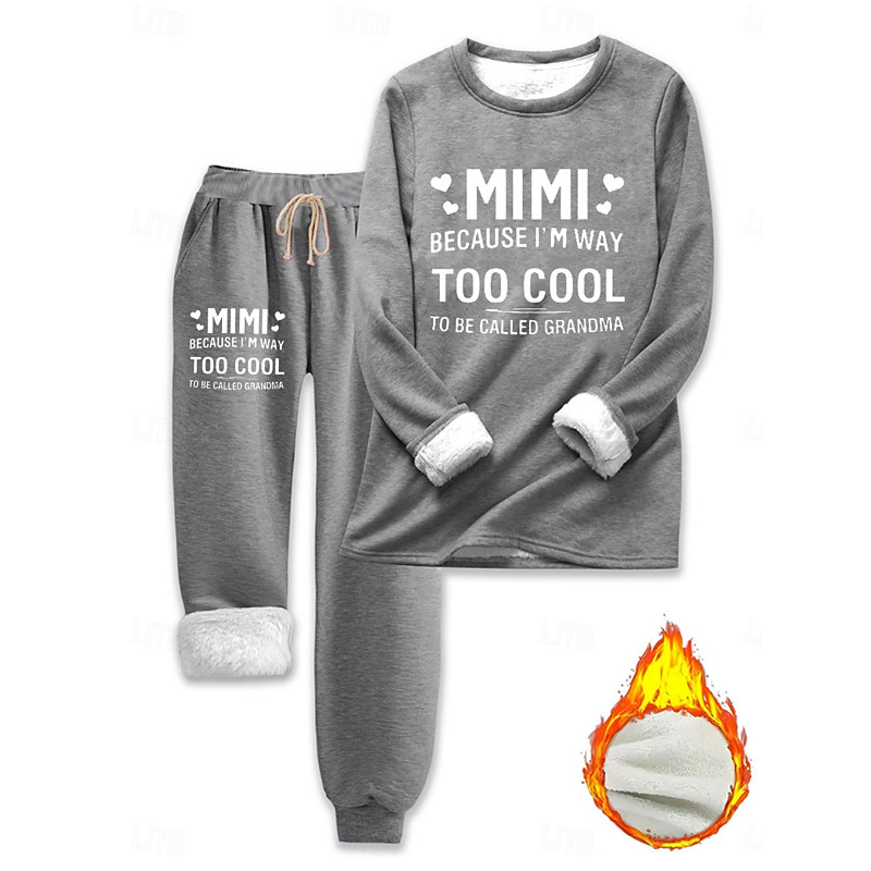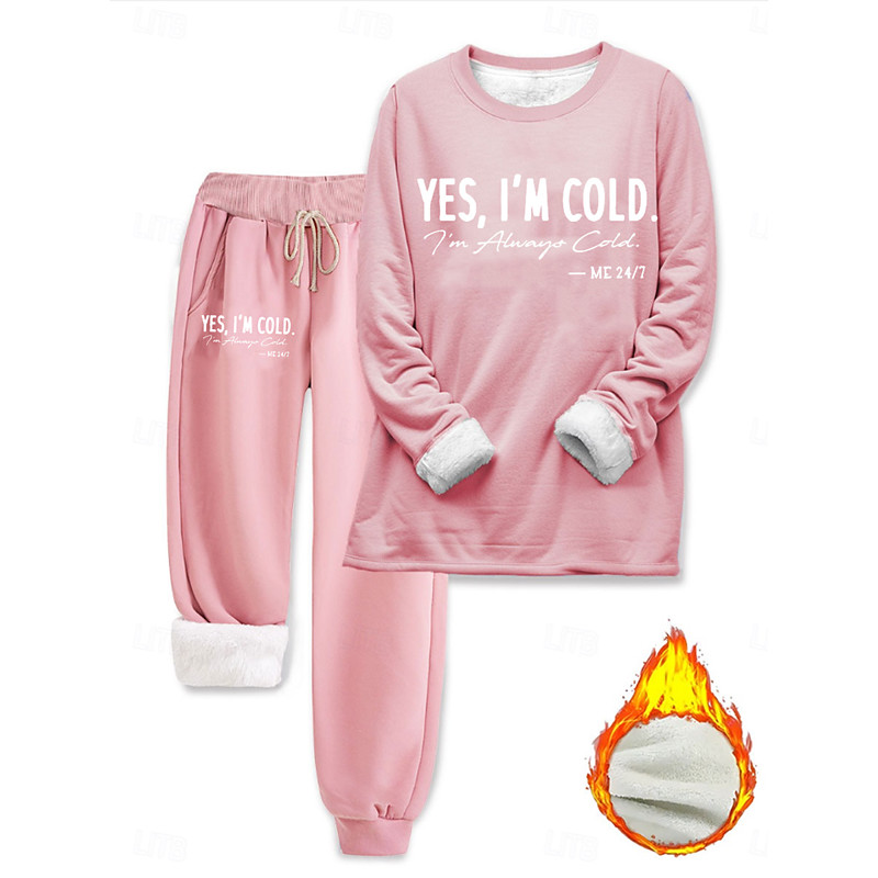 Women's Warm Daily Two Piece Sets Tracksuit Pants Sets Long Sleeve Crew Neck Graphic Letter Drawstring Print Casual Daily Black Pink Blue Fall Loose Fit