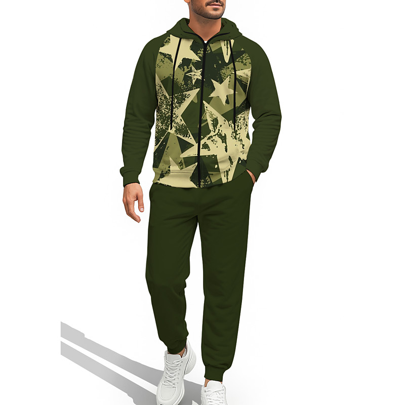Men's Hoodie Tracksuit Zip Hoodie Drawstring Pockets Camouflage Pants Hoodie Sweatshirt Fall Army Green Camouflage Brown Spandex Gym Workout Casual Basketball Baggy Long Sleeve Sport Activewear