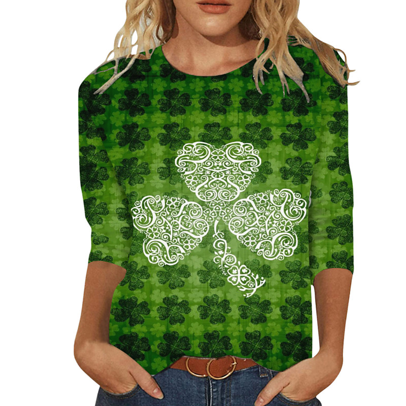 St. Paddy's Day St. Patrick's Day Women's T Shirt Shamrock Fashion Long Sleeve Round Neck Regular Tops Casual St.Patrick's Day Print Grass Green White Light Green Army Green Dark Green Spring Fall