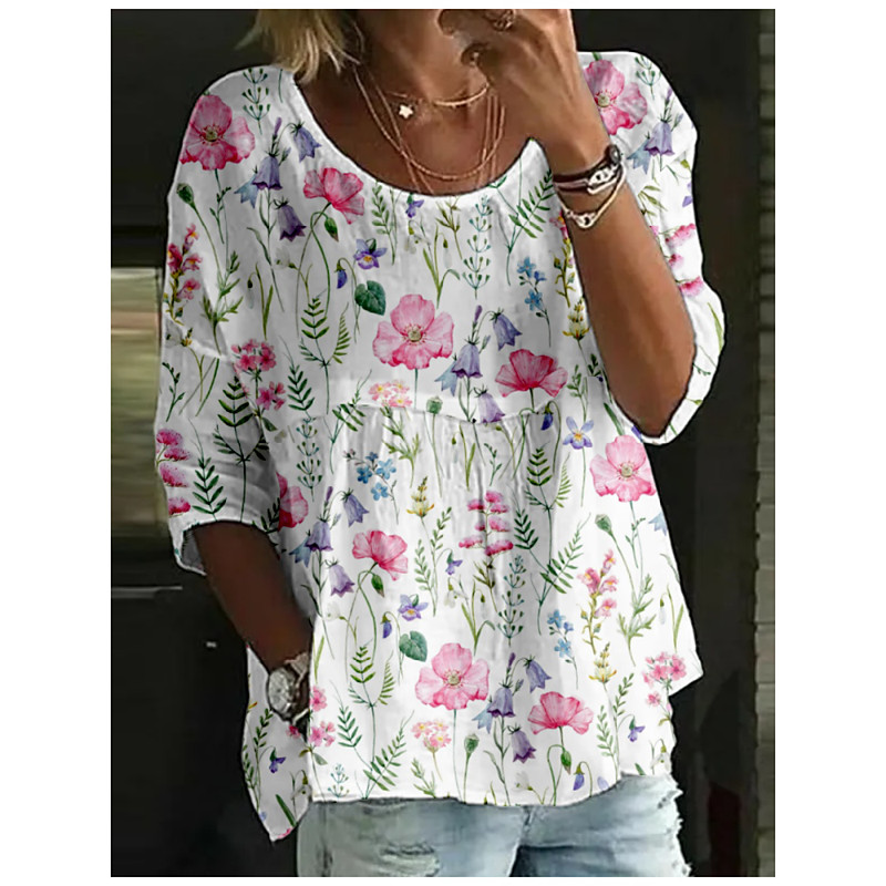 Women's Blouse Floral Stylish 3/4 Length Sleeve Crew Neck Regular Tops Daily Holiday Print White Light Green Pink Red Green Summer