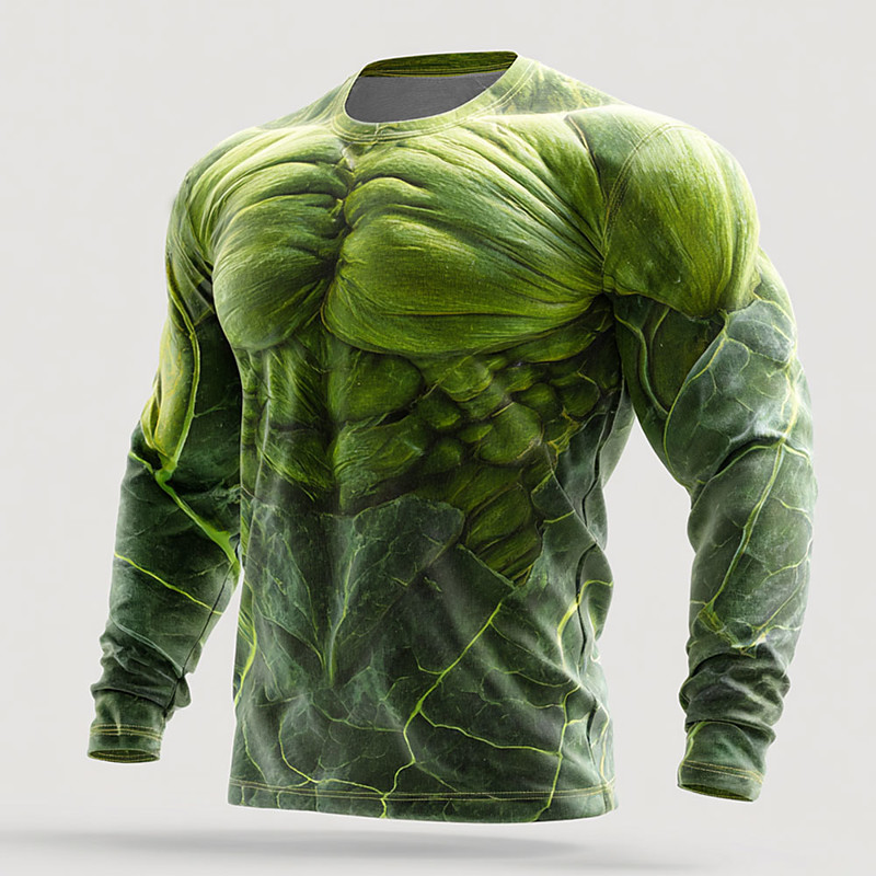Men's Muscle 3D T Shirt Long Sleeve T shirt 3D Print Crew Neck Shirt Fashion Exaggerated Daily Street Green 1# Green 2# Green 3# Summer Spring Fall Clothing Apparel S M L XL XXL XXXL