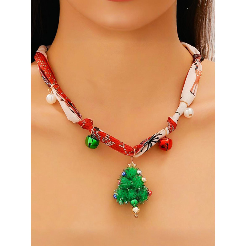 Women's Christmas Holiday Necklace, Alloy, Fabric, and Acrylic Materials, Festive Reindeer, Santa, and Christmas Tree Charms, Perfect for Holiday Parties
