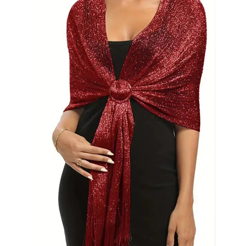 Women's Polyester Scarf,Includes Acrylic Buttons, Available in Multiple Colors, Perfect for Weddings and Evening Events