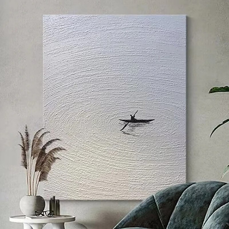 Handmade Oil Painting Canvas Wall Art Decoration Abstract Texture Minimalist Rafting Landscape Living Room Entrance Hall Decoration Home Decor Rolled Frameless Unstretched Painting