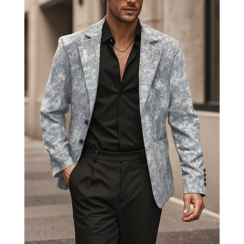 Men's Blazer Business Cocktail Party Wedding Party Fashion Casual Spring Fall Polyester Graphic Prints Pocket Buttons Comfortable Single Breasted Blazer Gray