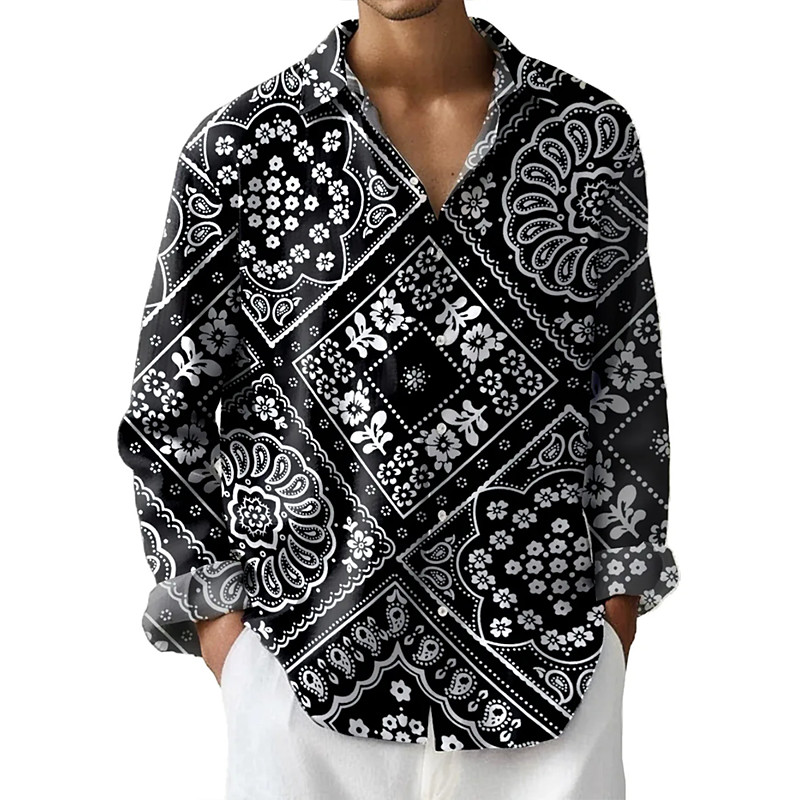 Men's Paisley Floral Print Ethnic Shirt Button Up Shirt Long Sleeve Vintage Retro Outdoor Dailywear Spring Fall Turndown 3D Print Collared Shirts Black Purple