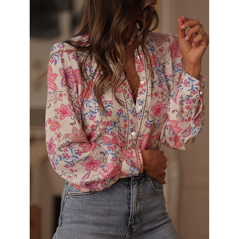 Women's Graphic Print V Neck Maxi Dress Long Sleeve Spring Fall