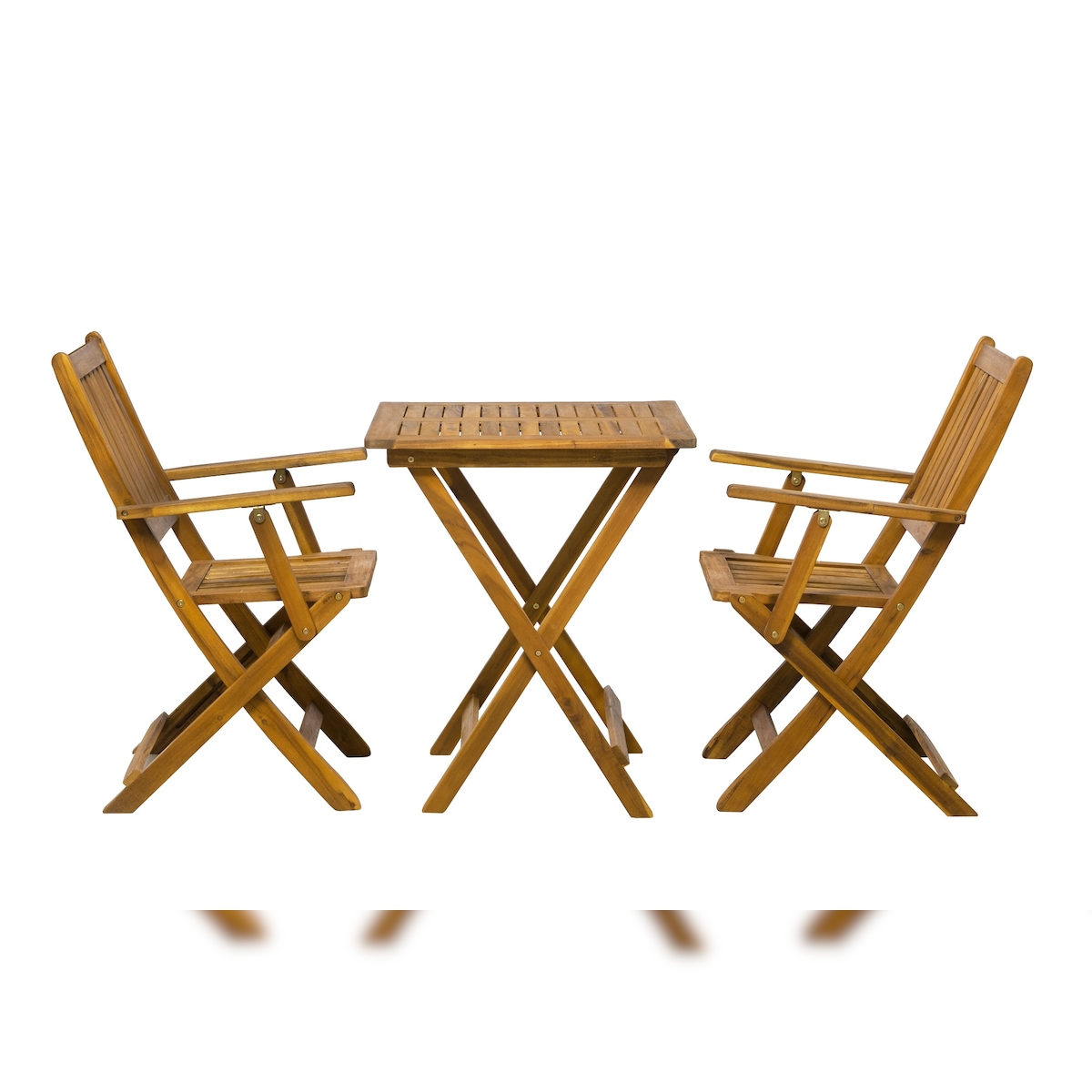 Möbilia 3-tlg. Sitzgruppe aus Akazie | 2 Armlehnstühle, 1 Tisch | zusammenklappbar | natur