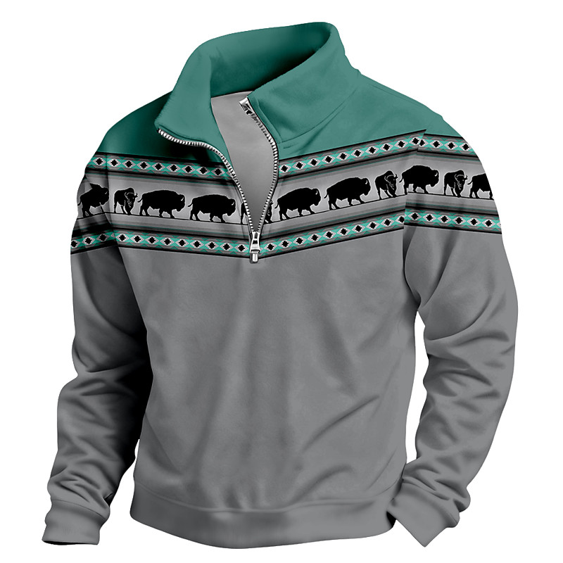 Men's Aztec Cowboy Sweatshirt Ethnic Vintage Retro Stand Collar Outdoor Gift Red Brown Green Zipper Fall Winter Designer S M L XL XXL XXXL