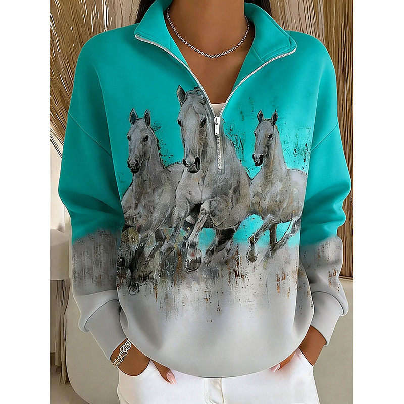 Women's Pullover Sweatshirt Graphic Animal Casual Long Sleeve Half Zip Regular Tops Casual Dailywear Holiday Zipper Blue Pink khaki Fall