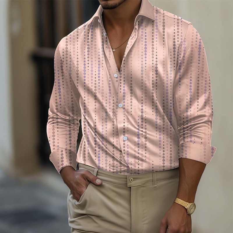 Men's Geometric Round Dots Gradient Color Shirt Satin Shirt Dress Shirt Long Sleeve Fashion Casual Vacation Dailywear Summer Spring Fall Turndown 3D Print Button Up Shirts Blue White Pink Khaki