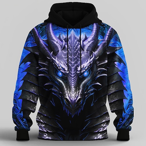 Per uomo Drago 3D Felpa con Cappuccio Felpa Cool Festa Manica Lunga Girocollo Club Abbigliamento casual alla moda Blu Arancione Verde Coulisse Autunno Inverno progettista S M L XL XXL XXXL