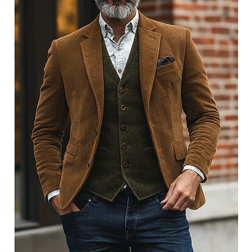 Per uomo Giacca in Velluto a Coste Colletto ad incastro Moda Classico Casual Tinta unita Blazer Nero Marrone Verde Vestibilità su misura Monopetto Due Bottoni