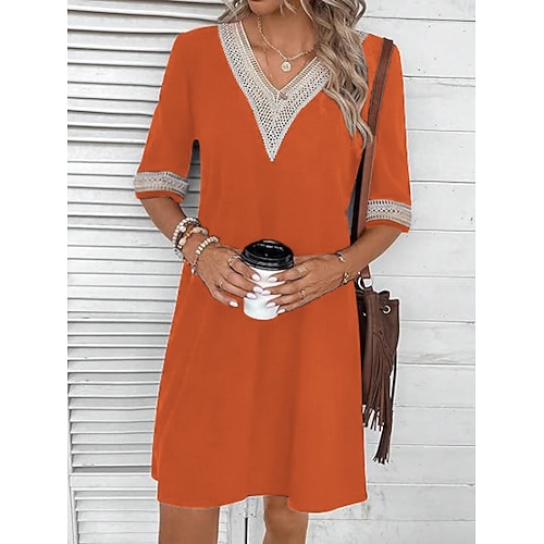 Per donna Abito al ginocchio Abito Bianco Vestito Casual Moda Moderno All'aperto Vacanza Uscire Vestibilità comoda Semplice Mezza Manica Scollo a V Blu Nero Bianco Arancione Estate Primavera
