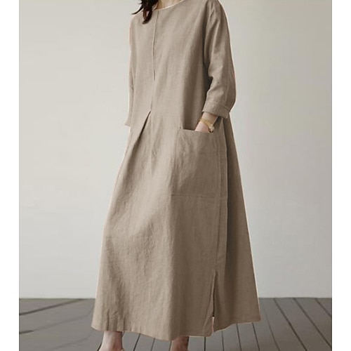 Per donna Abito maxi 100% cotone Abito a Tubino Vestito a caftano Vestito Casual Casual Quotidiano Casual Stile da Strada Quotidiano All'aperto Vacanza Vestibilità comoda Semplice Manica Lunga