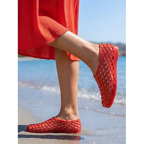 sandali da donna in gelatina rossa - scarpe da acqua traspiranti in rete traforata con comoda suola piatta per vacanze al mare viaggio sulle isole tropicali