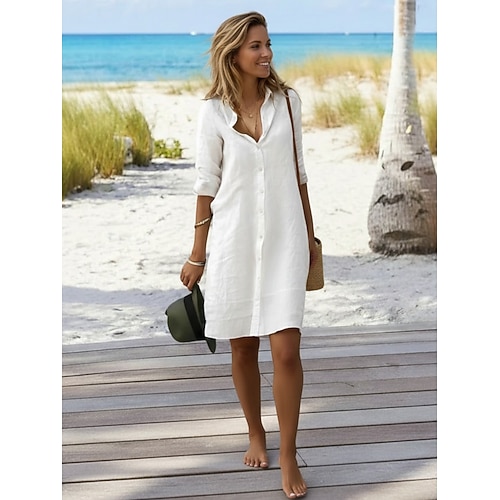 Per donna Mini Abito Misto cotone Abito Camicia Abito bianco in cotone Abito aderente Vacanza Essenziale Moderno Quotidiano Weekend Vestibilità comoda Semplice Manica 3/4 Colletto a Camicia Blu Nero