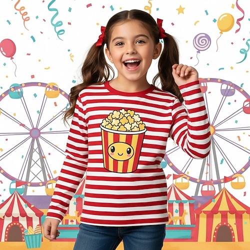 Costume di Carnevale 2026 Ragazze 3D Grafico A righe Maglietta Manica Lunga Stampa 3D Primavera Autunno Sport Moda Streetwear Bambini 4-12 Anni Girocollo Casuale Quotidiano All'aperto Vestibilit