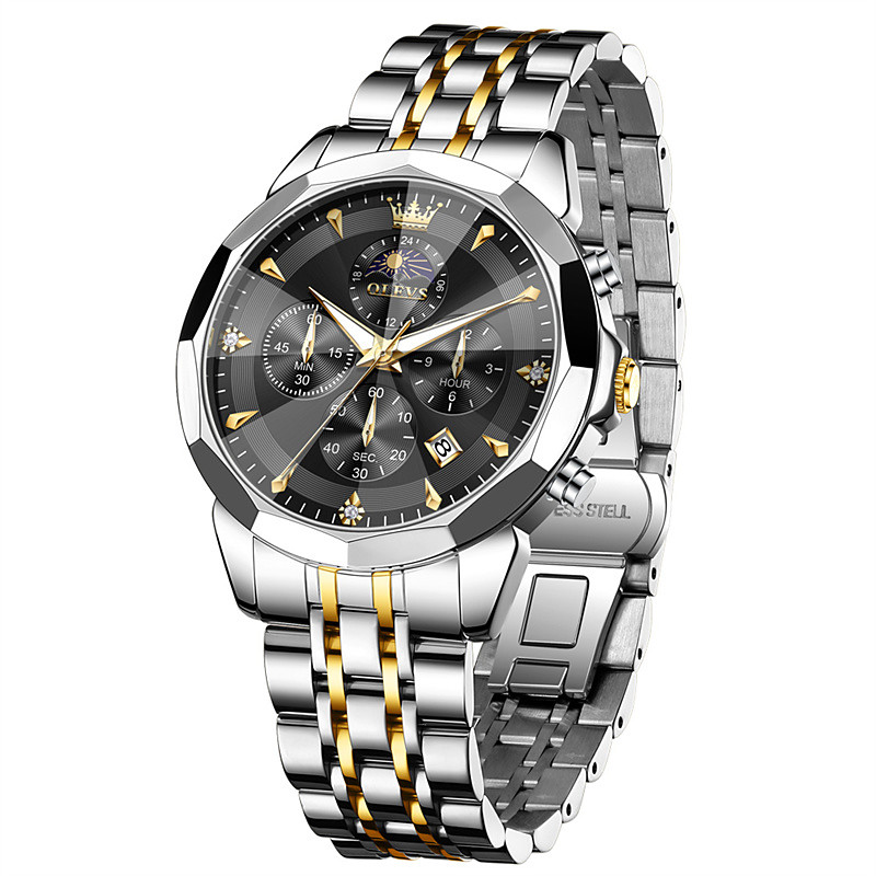 The New Olevs Men'S Steel Band Business Watch With Luminous Chronograph Calendar Small Three Hands Day Of The Week Display Multi-Functional Quartz Watch Fashionable Casual Waterproof Sports Me