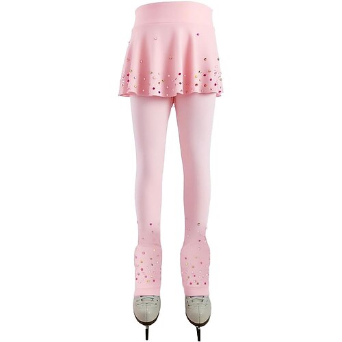 pantaloni da pattinaggio artistico da donna e da ragazza, pantaloni da pattinaggio sul ghiaccio, rosa, elasticizzati, abbigliamento da pattinaggio per gare di allenamento, termici, caldi, con