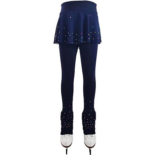 pantaloni da pattinaggio artistico da donna e da ragazza, pantaloni da pattinaggio sul ghiaccio, neri, elastici, abbigliamento da pattinaggio per gare di allenamento, termici, caldi, con