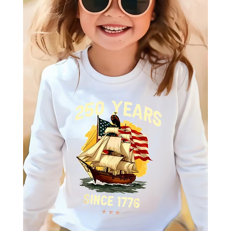Unisex Girls' 3D Graphic Flag 250th Anniversary Kid's American US Flag T shirt Tee Long Sleeve 3D Print Summer Fall Sports Fashion Streetwear Kids 4-12 Years Crew Neck Casual Daily Outdoor Regular Fit