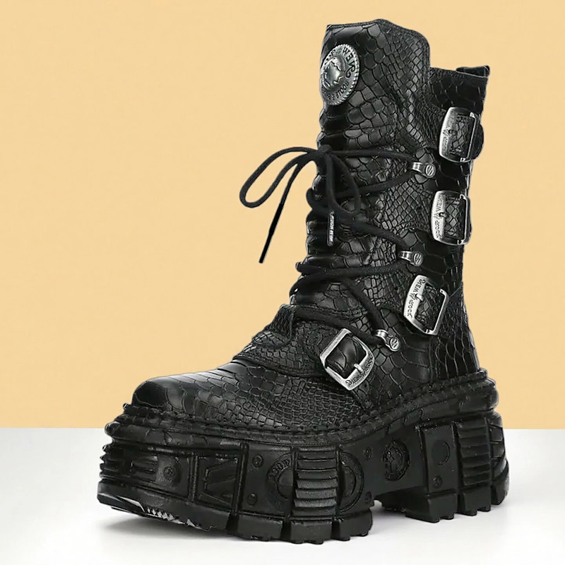 Men's Gothic Flame Platform Combat Boots – Steampunk Chunky Sole Lace-Up Ankle Boots for Punk Rock Parties Cosplay