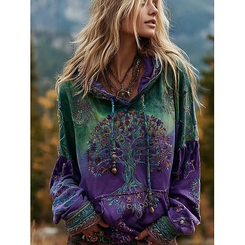 Felpa con cappuccio vintage boho 3D stampata da donna felpa con cappuccio patchwork felpa a pullover floreale elegante calda vintage a maniche lunghe con cappuccio street casual quotidiano patchwork