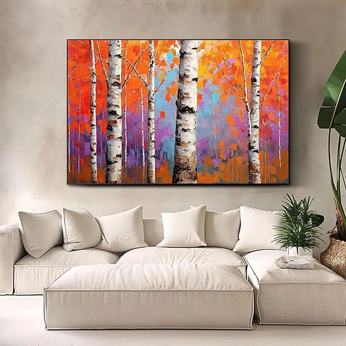 betulle dipinte a mano, pittura a olio su tela, decorazione da parete boho, paesaggio autunnale della foresta di betulle, arte di betulle, decorazione da parete, arte da parete astratta