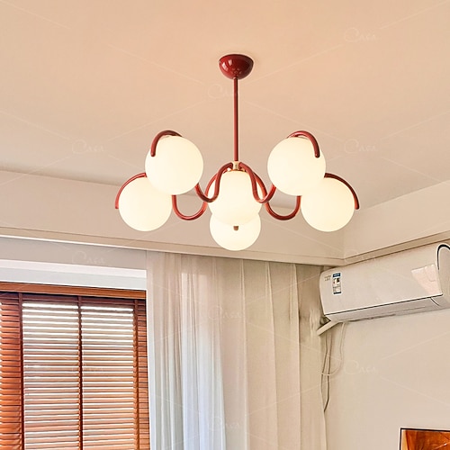 lampadario contemporaneo sferico in ferro e vetro a 6 luci per camera da letto