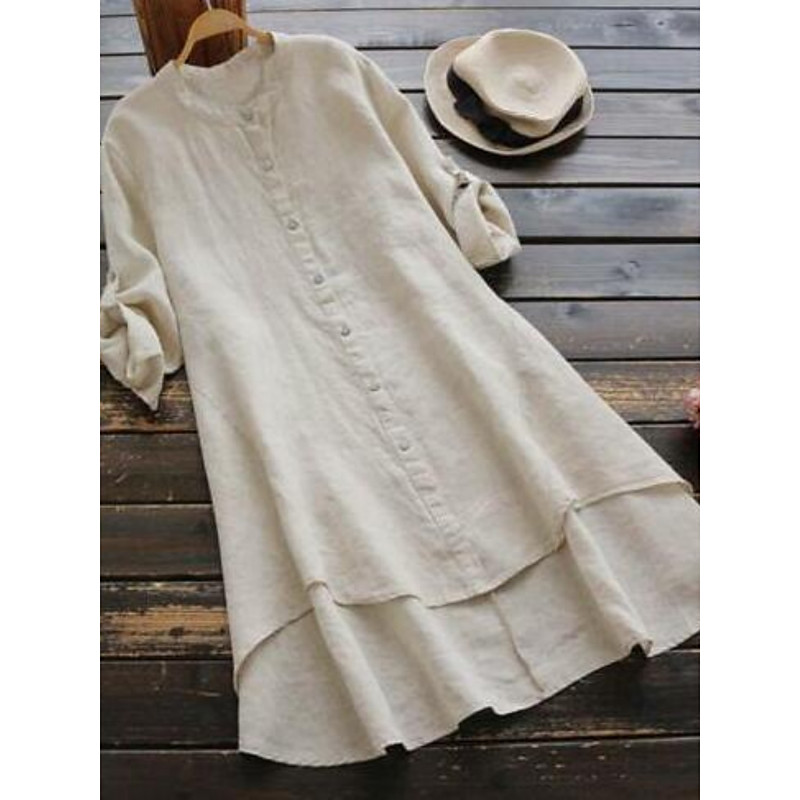 Women's Blouse Solid Color Daily Stylish Casual Long Sleeve High Neck Long Tops Daily Buttons Blue Black Red Green Apricot Summer Spring Fall