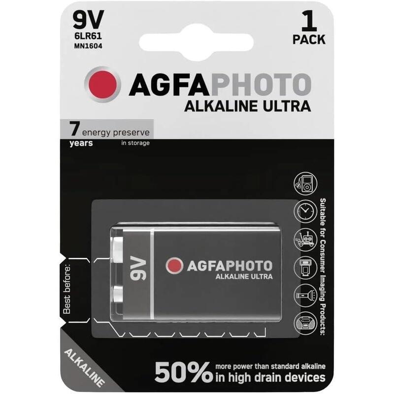 Agfaphoto Alkalibatterie, E-Block, 6Lr61, 9V Ultra, Einzelhandelsblister (1er-Pack)