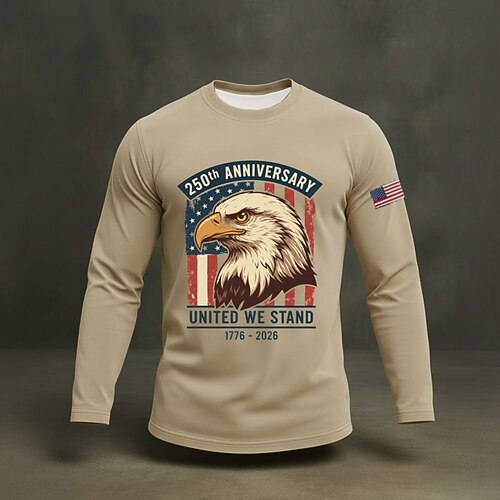 Amerikas 250. Jahrestag Herren Grafik Flagge Adler T Shirt T-Shirt Langarmshirt Langarm T-Shirt 3D-Druck Rundhalsausschnitt Hemd Mode Täglich Basic Täglich Urlaub Straße Marineblau Khaki Armeegrün