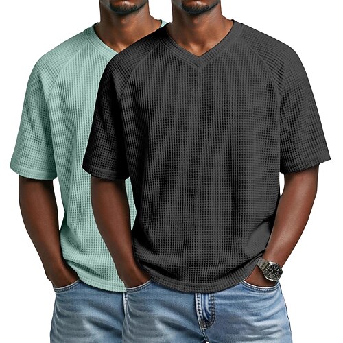 2 pezzi t-shirt waffle da uomo maglietta a maniche corte scollo a V estate tinta unita testurizzata moda designer casual 2 pezzi multipack maniche raglan casual quotidiano esterno bianco nero top