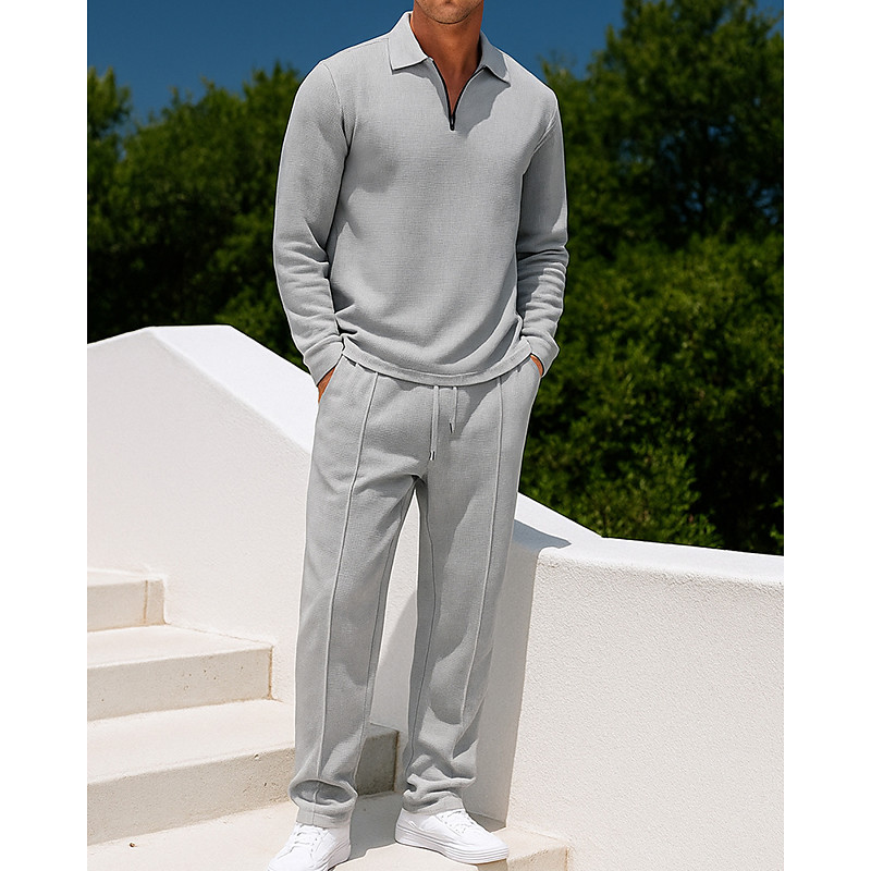 Men's 2 Piece Tracksuit Sweatsuit Sets Lounge Outfits Quarter Zipper Solid Colored Clothing Suit Fall Black White Outdoor Travel Sports Moisture Wicking Long Sleeve Sport Activewear Micro-elastic