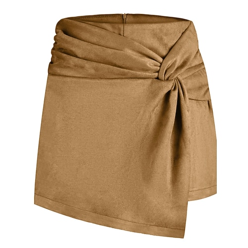 Per donna Gonna in finta pelle scamosciata Moda Casual Mini Vita Alta Gonne Semplice Arricciato Micro-elastico Quotidiano Streetwear Cammello Vinaccia Nero Marrone Primavera Pelle scamosciata