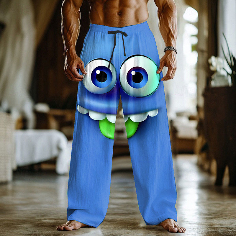 Men's 3D Cartoon Smile Face Trousers Baggy Pants Casual Pants Mid Waist Funny Outdoor Vacation Home Elastic Drawstring Waist Linen-Like Pants with Pockets Spring Fall 3D Print Light Blue Blue Orange
