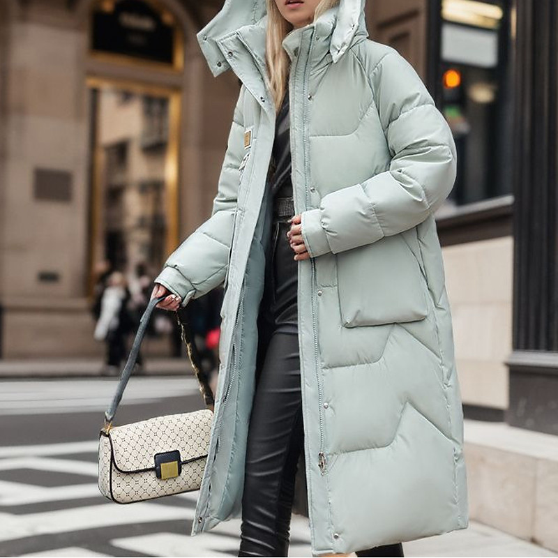 Women's Puffer Jacket Quilted Jacket Hoodie Jacket Warm Comfortable Zipper Pocket Casual Plain Vacation Home Daily Wear Going out Long Hooded Regular Fit Long Sleeve Outerwear Black Green Khaki Fall