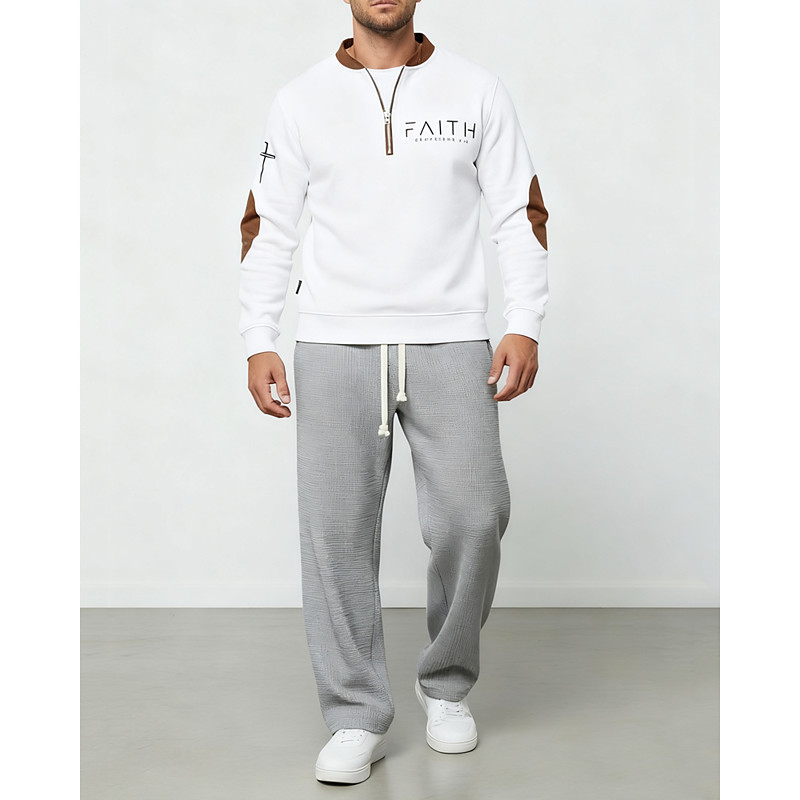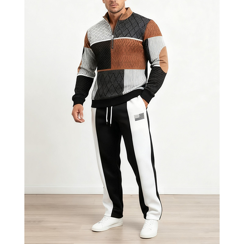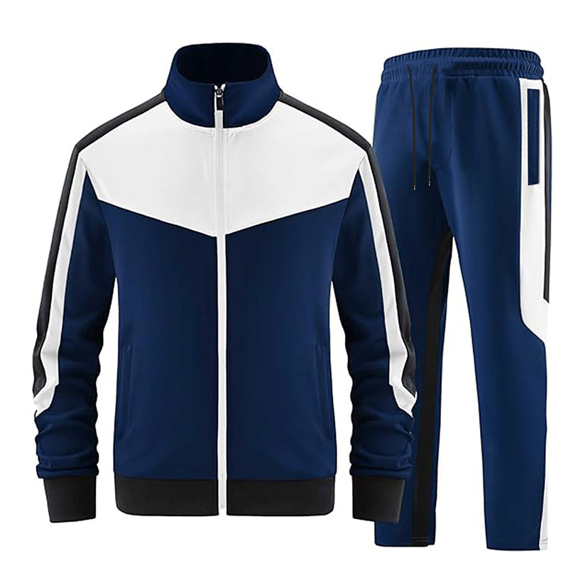Men's Sweatshirt Tracksuit Sweatpants Outfit Set Stand Collar Outdoor Daily Sports Drawstring Half Zip Color Block Letter Blue Black White Activewear Fashion Streetwear Spring