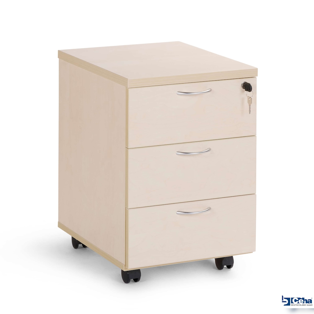 CEHA Büro- und Rollcontainer 500 mm Tiefe aus Holz mit 3 Schüben in Dekor ahorn
