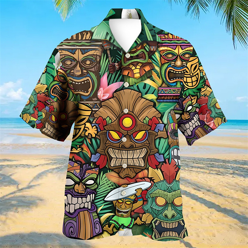 Men's Graphic Tropical Summer Hawaiian Shirt Aloha Shirt Short Sleeve Shirt Vacation Hawaiian Abstract Outdoor Vacation Hawaiian Dark Green Green S M L